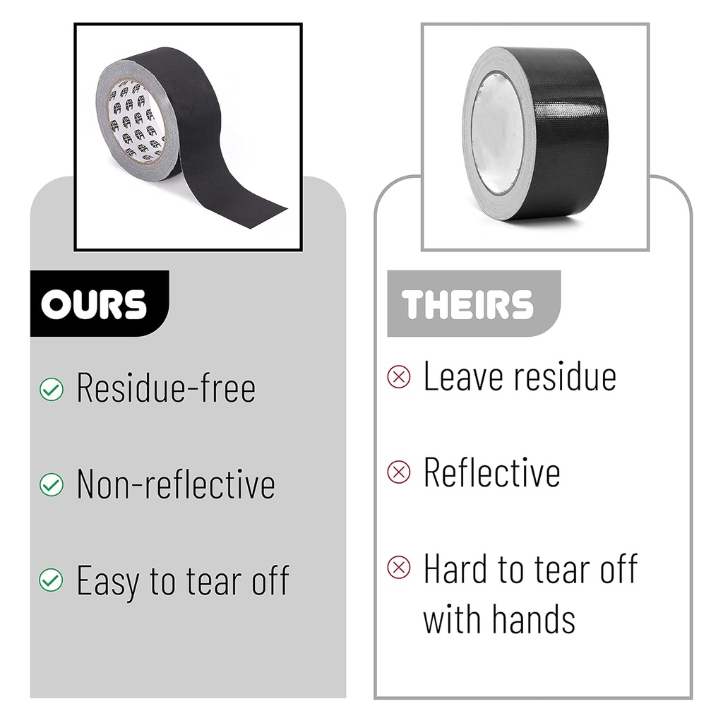 Bates Choice Cinta Gaffer Profesional – Pack de 6 Rollos 2″ x 23 yd, Negro